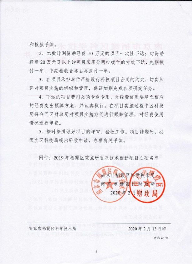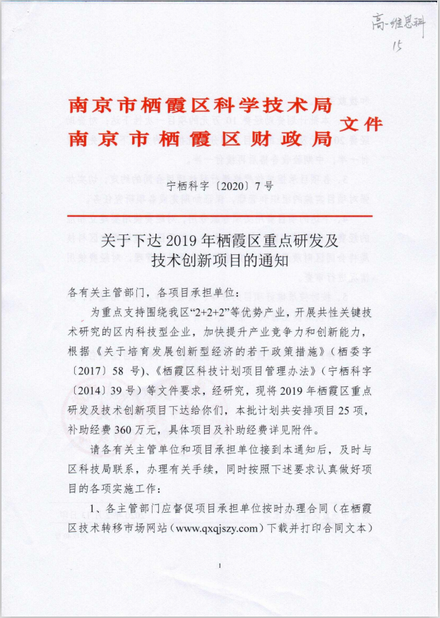 根據(jù)棲霞區(qū)科技計(jì)劃項(xiàng)目管理相關(guān)工作要求,棲霞區(qū)科技局組織實(shí)施了2019年棲霞區(qū)重點(diǎn)研發(fā)及技術(shù)創(chuàng)新項(xiàng)目、產(chǎn)學(xué)研合作及科技成果轉(zhuǎn)化項(xiàng)目兩個(gè)科技計(jì)劃專項(xiàng)。南京維思科汽車科技有限公司“汽車安全核心零部件關(guān)鍵技術(shù)研發(fā)與制造”項(xiàng)目入選“2019年棲霞區(qū)重點(diǎn)研發(fā)及技術(shù)創(chuàng)新立項(xiàng)項(xiàng)目”。